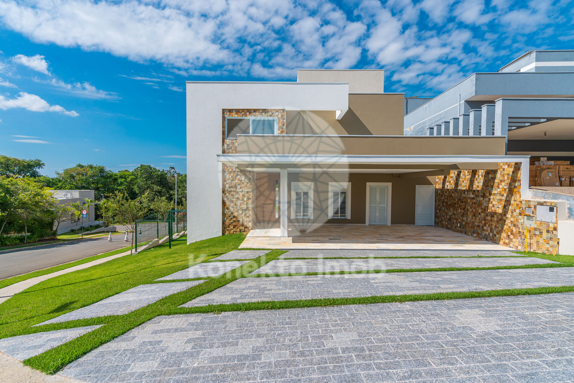 Uma casa com arquitetura moderna, construída com materiais de alta qualidade e durabilidade.