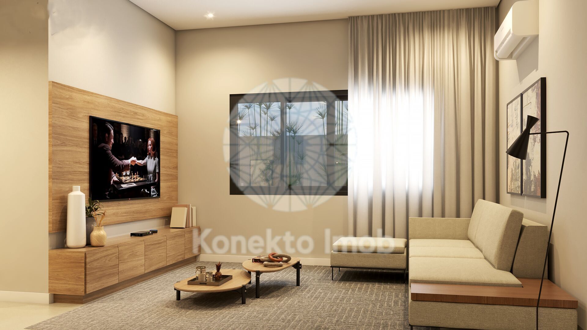 - Logo ao lado da entrada, a casa possui um quarto versátil que pode ser transformado em um Home Office ou Home Theater.